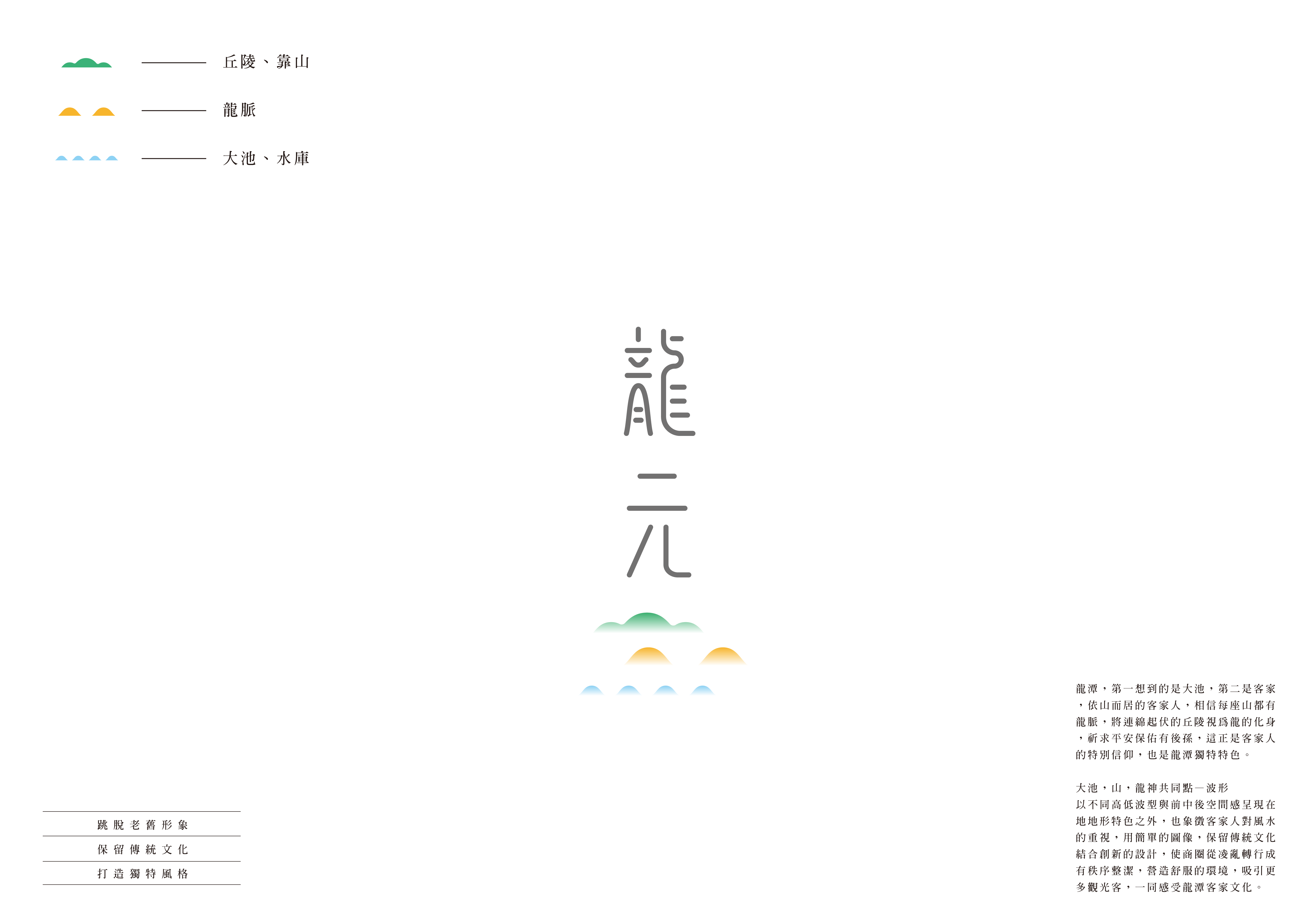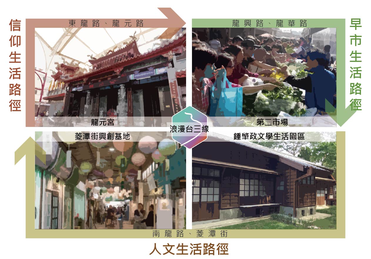龍潭區正位於臺三線經過桃園市之相關區域,其地理位置上可說是位於北臺三線的中心。以人口來看,客家人口比例高,是客委會指定的客家文化重點發展區。此外,龍潭的特殊性,在於其社會人文的勃發,客家文化、文學、音樂、青年回鄉、社團蓬勃等,蓄涵的能量豐厚且具有充足活力及衝勁,是可以讓人停下腳步,細細品味的「龍潭」。
